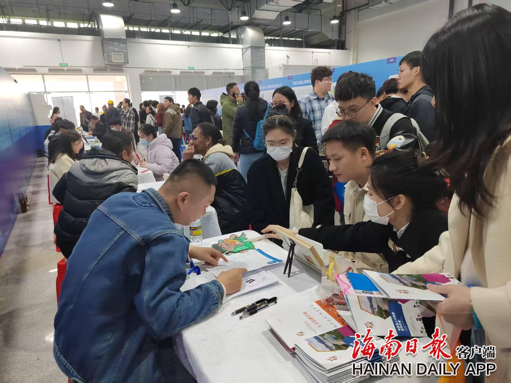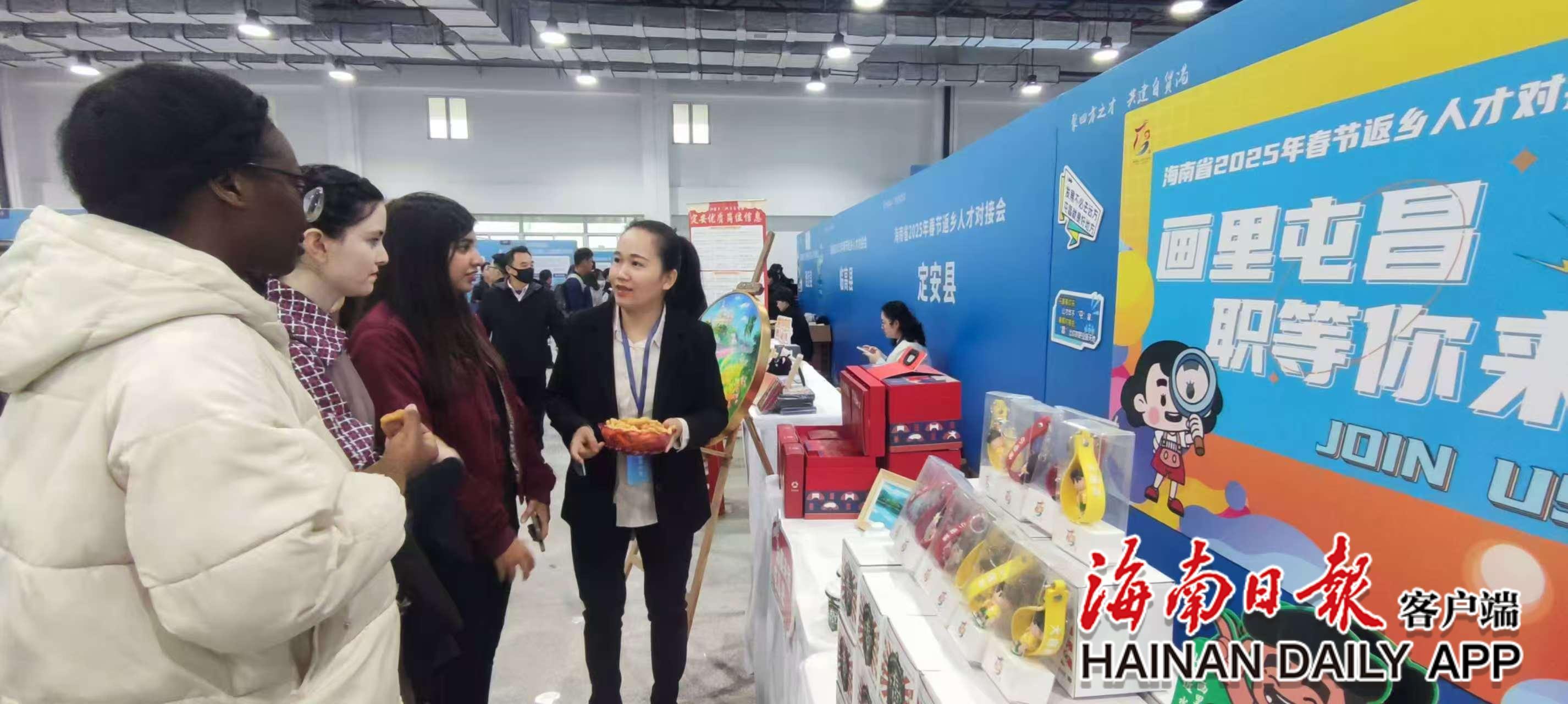 2月8日,海南省2025年春节返乡人才对接会在海口市举行,屯昌19家企事业单位携百余个就业岗位前往现场招聘,吸引不少求职者前来咨询及应聘。